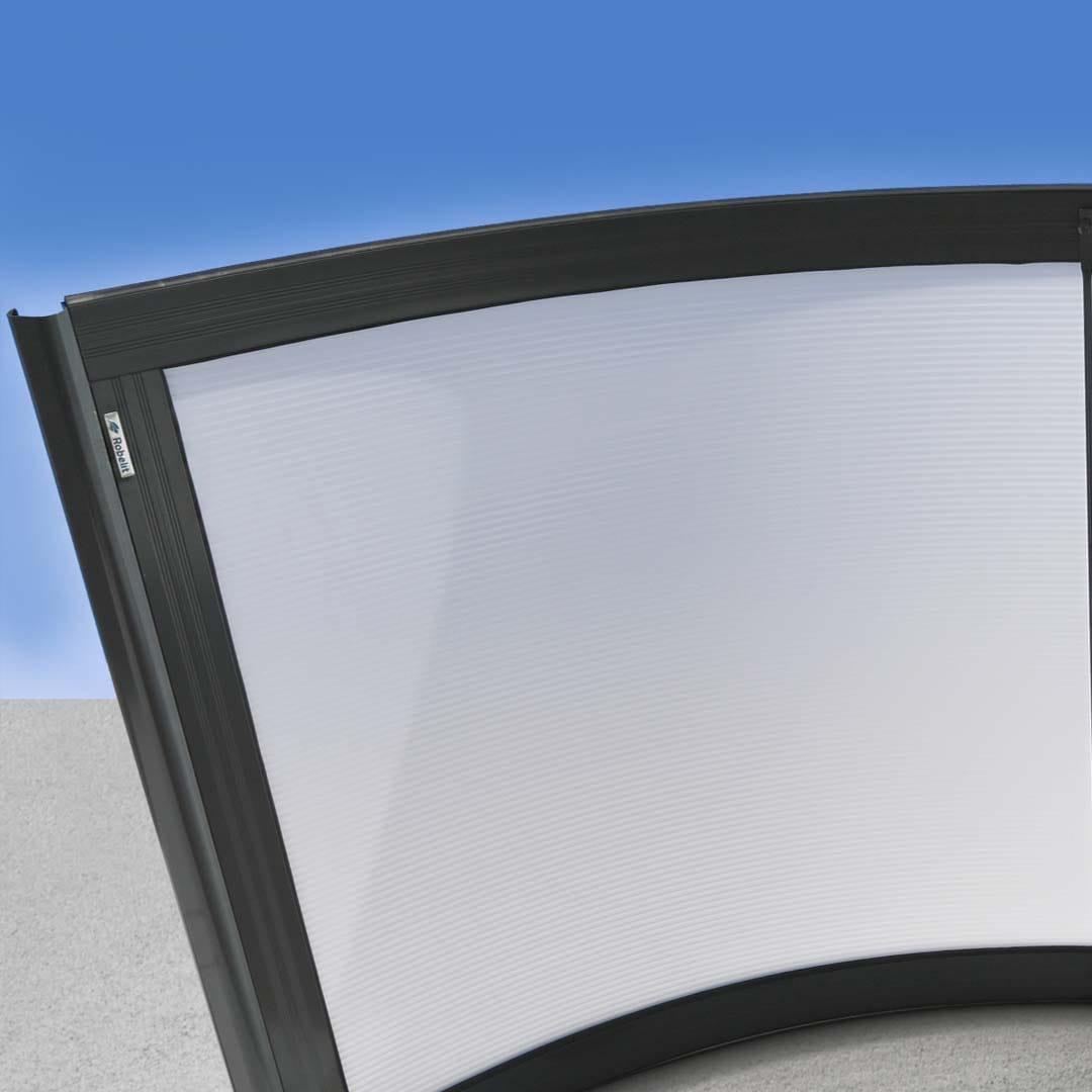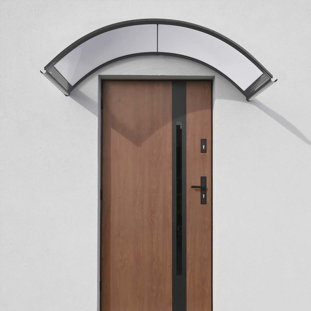 Daszek łukowy jest lekkim zadaszeniem drzwi wykonanym z profili aluminiowych malowanych proszkowo. Wypełnienie stanowi płyta z poliwęglanu komorowego o grubości 4,5 mm. Daszek można doposażyć w ściankę boczną montowaną z prawej lub lewej strony.