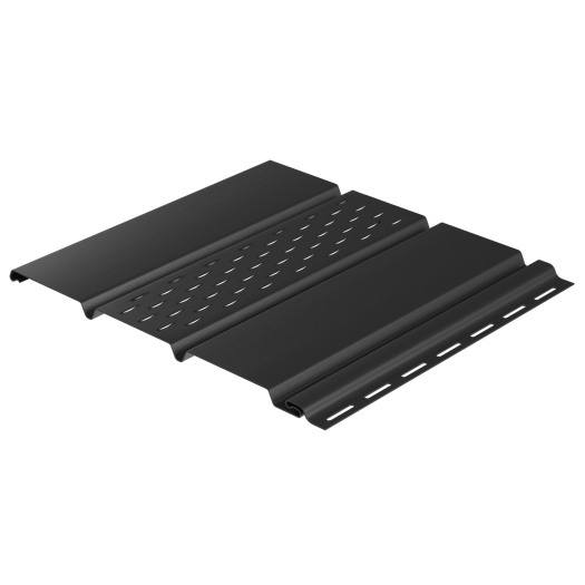 System wyróżnia się sztywnością, odpornością na warunki atmosferyczne i łatwością montażu dzięki systemowi click. Perforowane panele idealnie wspomagają cyrkulację powietrza pod połacią dachu, eliminując problem zawilgocenia. System uzupełniają listwy montażowe i narożniki – dostępne również w naszej ofercie.