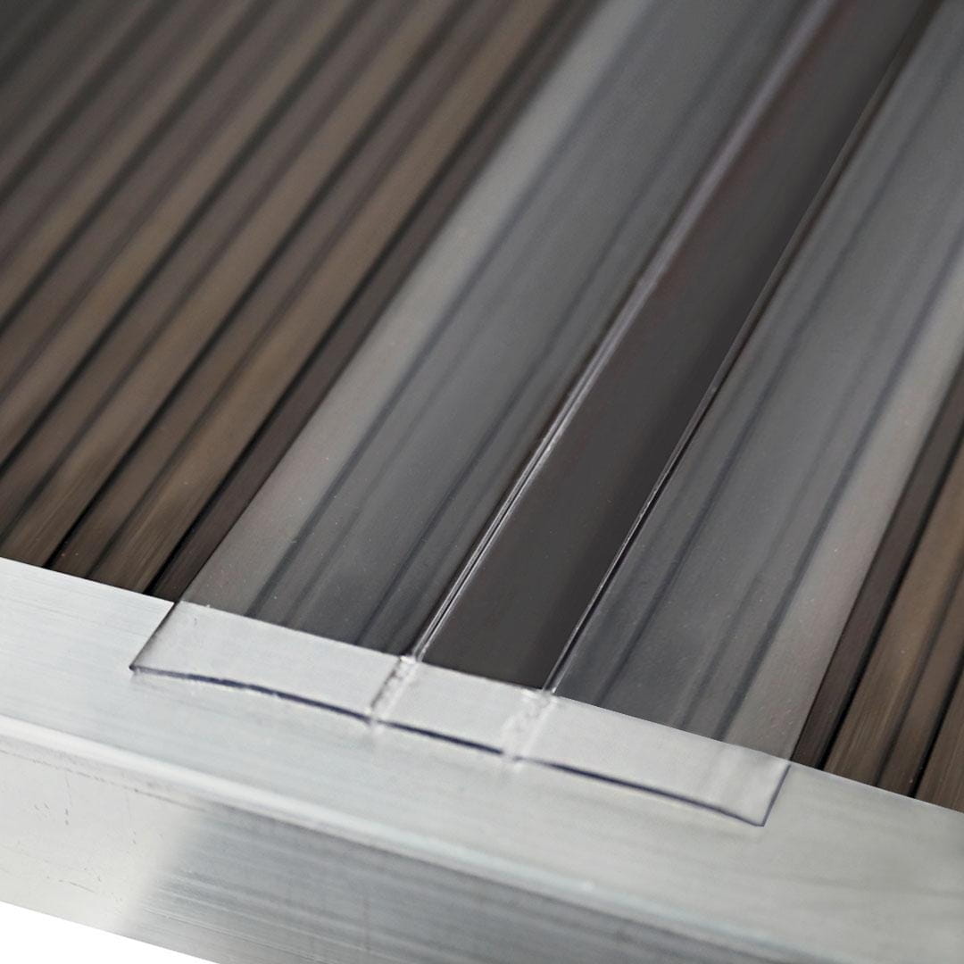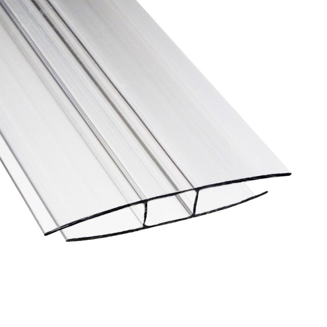 Profil łączący typu H wykonany z bezbarwnego poliwęglanu, przeznaczony do łączenia płyt komorowych o grubości 10 mm. Umożliwia estetyczne i trwałe połączenie dwóch płyt na długości, jednocześnie zachowując przezroczystość i spójność całej powierzchni.